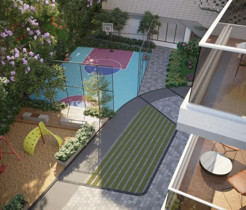 Family & Community: Children’s play areas, dedicated seating for elders, landscaped lawns, and aesthetic water features.