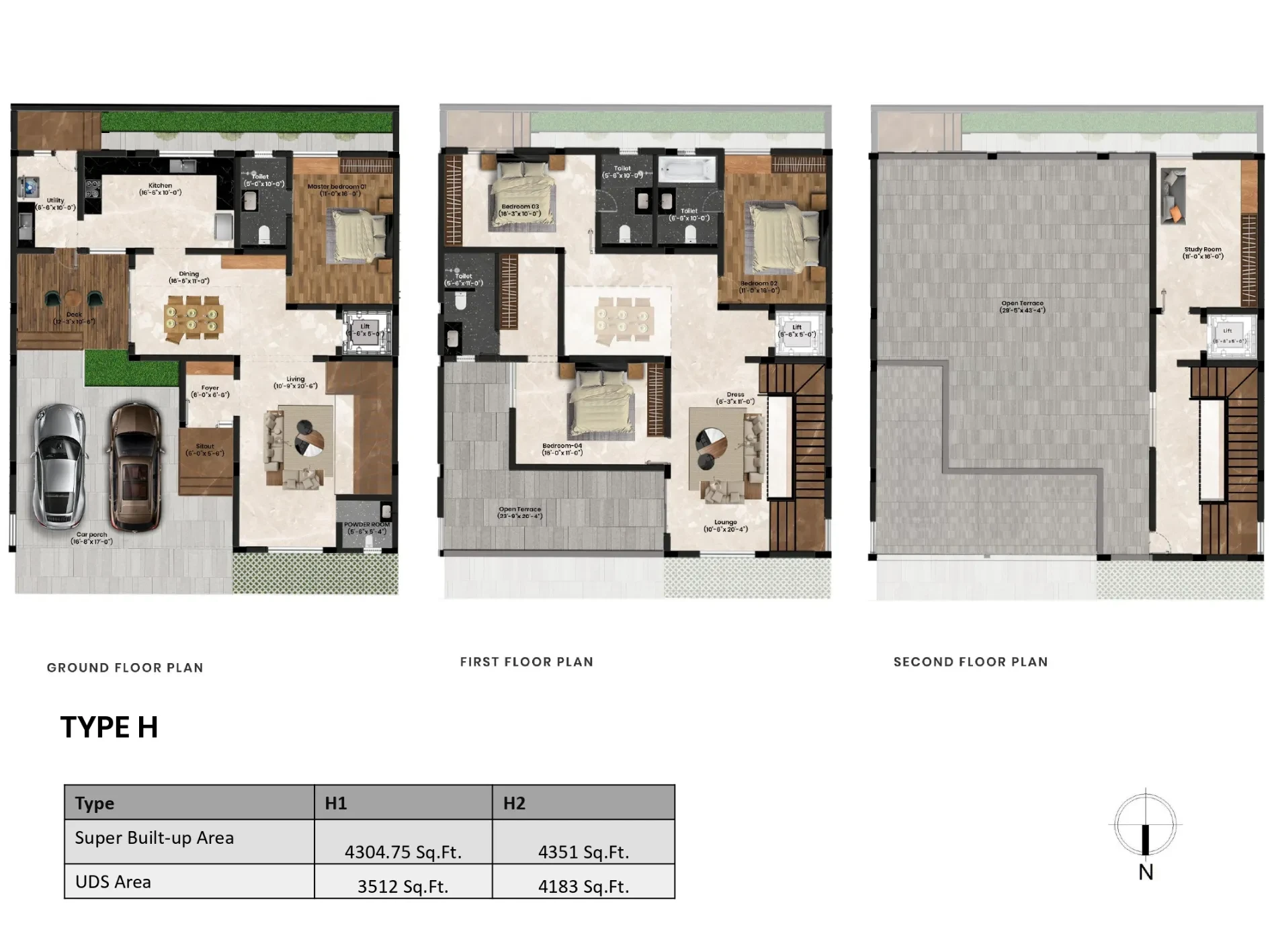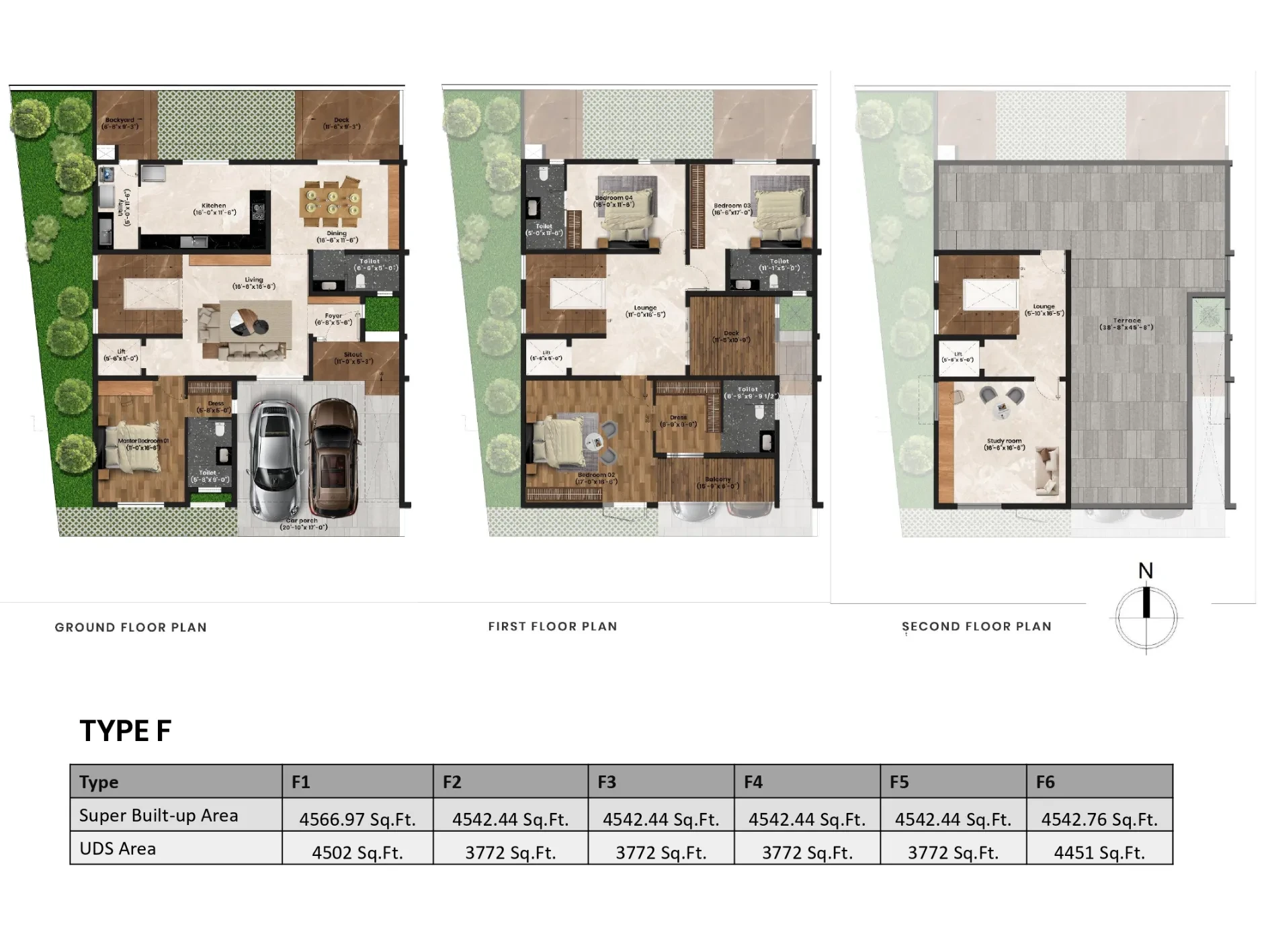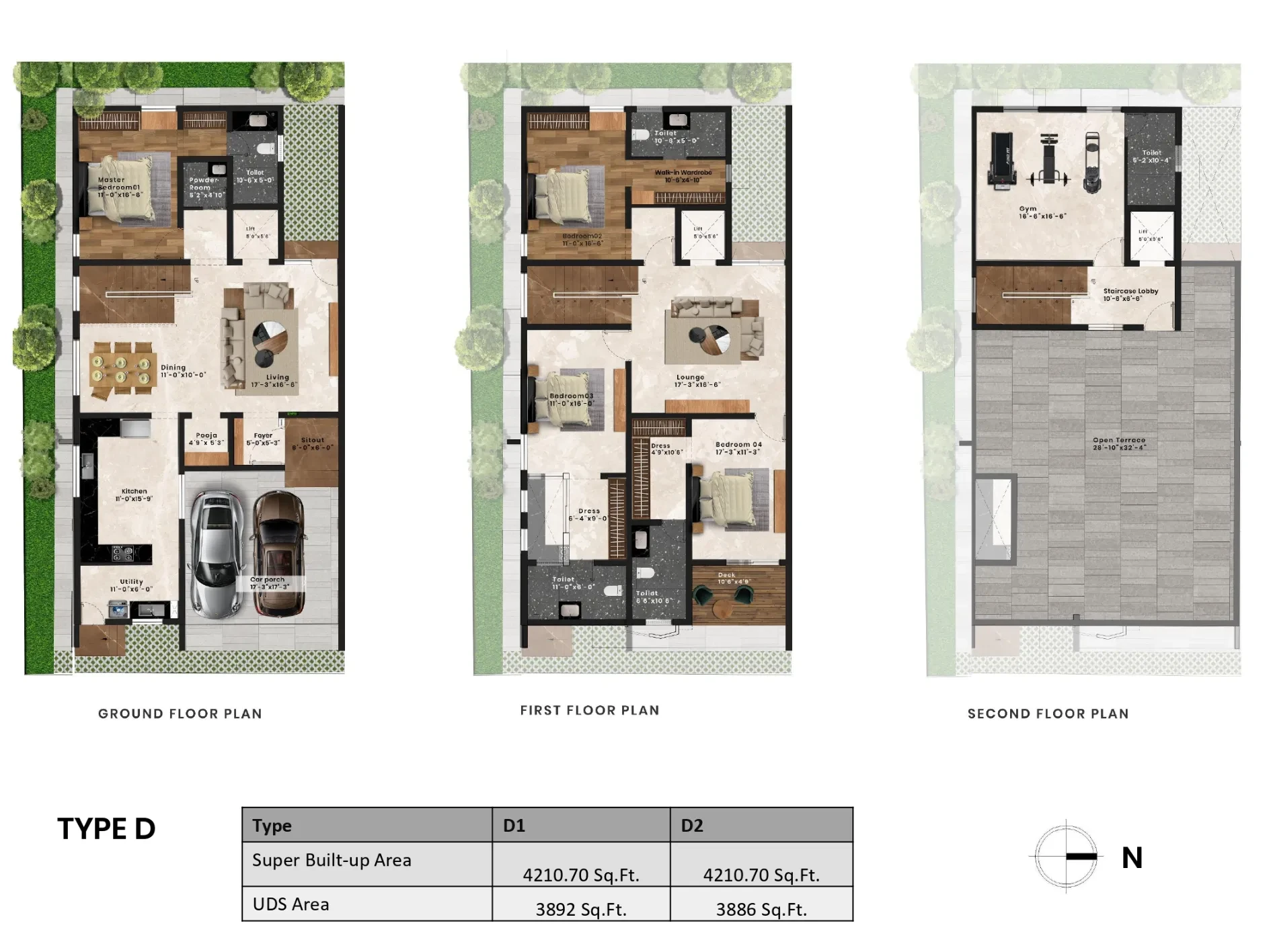 - Plot Size: Presidential villas are built on plots ranging from 1,900 to 4,500 sq. ft.
