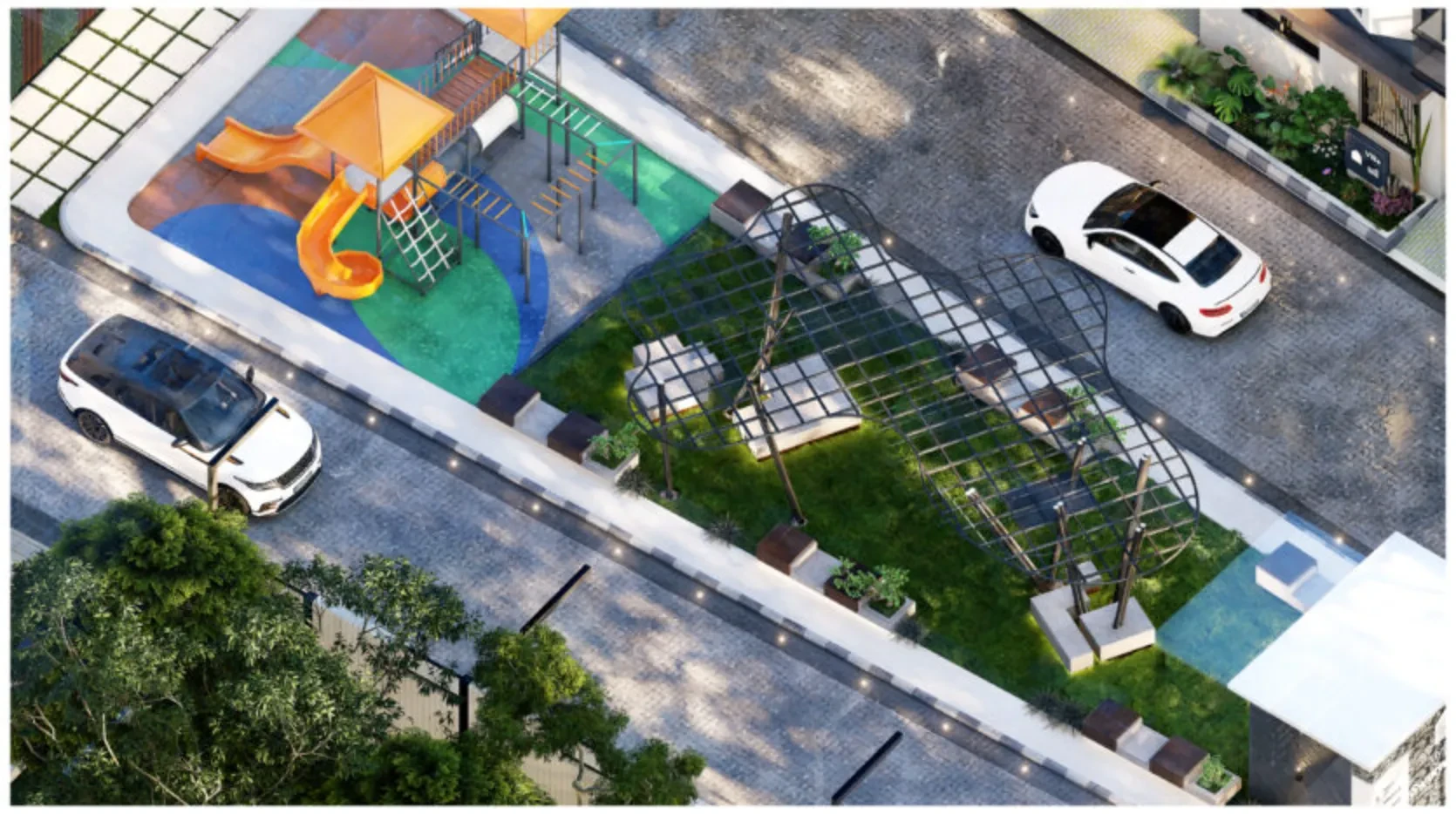 - Utilities: Main water sump, sewage treatment plant (STP), and solar-powered street lighting.