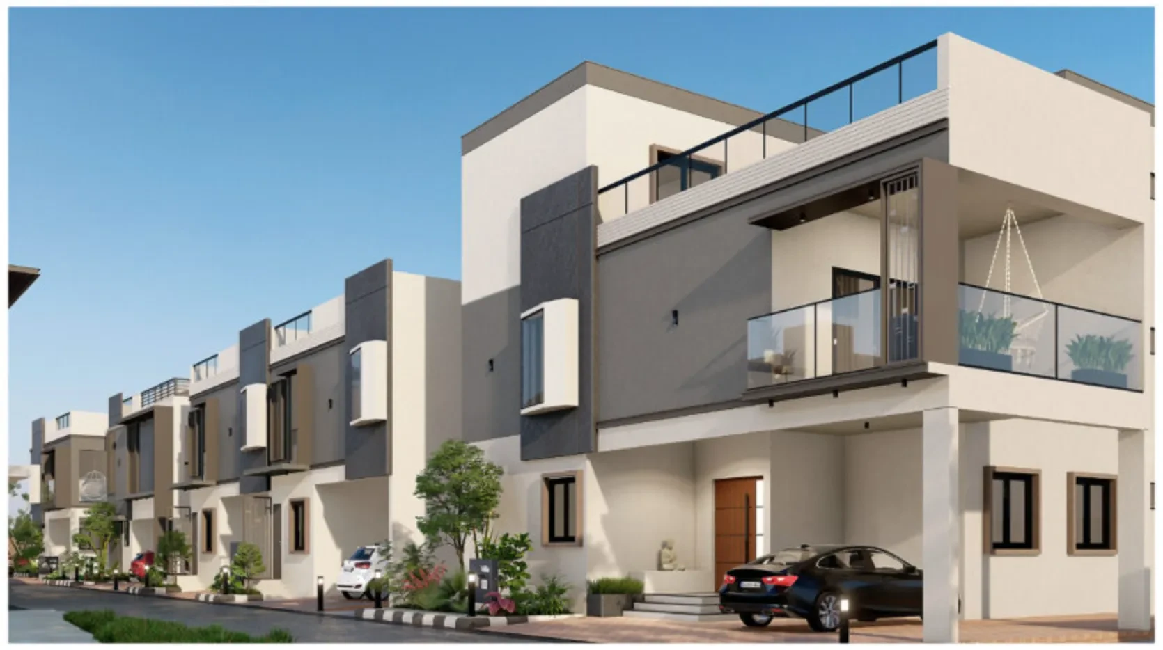 - Structure: Multi-storied villas (G+2) featuring 2 or 3 levels.