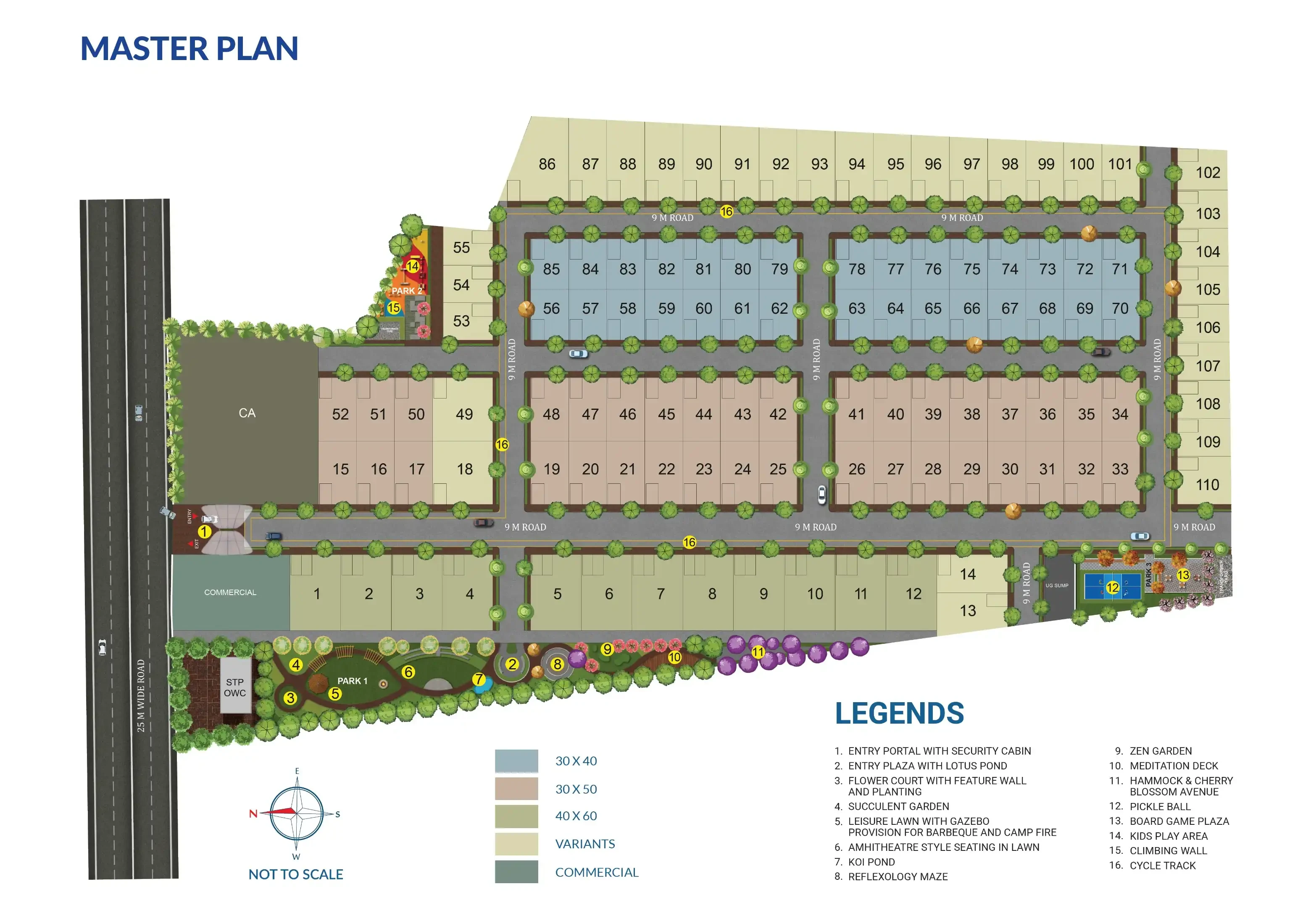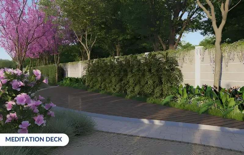 Wellness & Leisure: Features a Zen Garden, Meditation Deck, and landscaped parks.