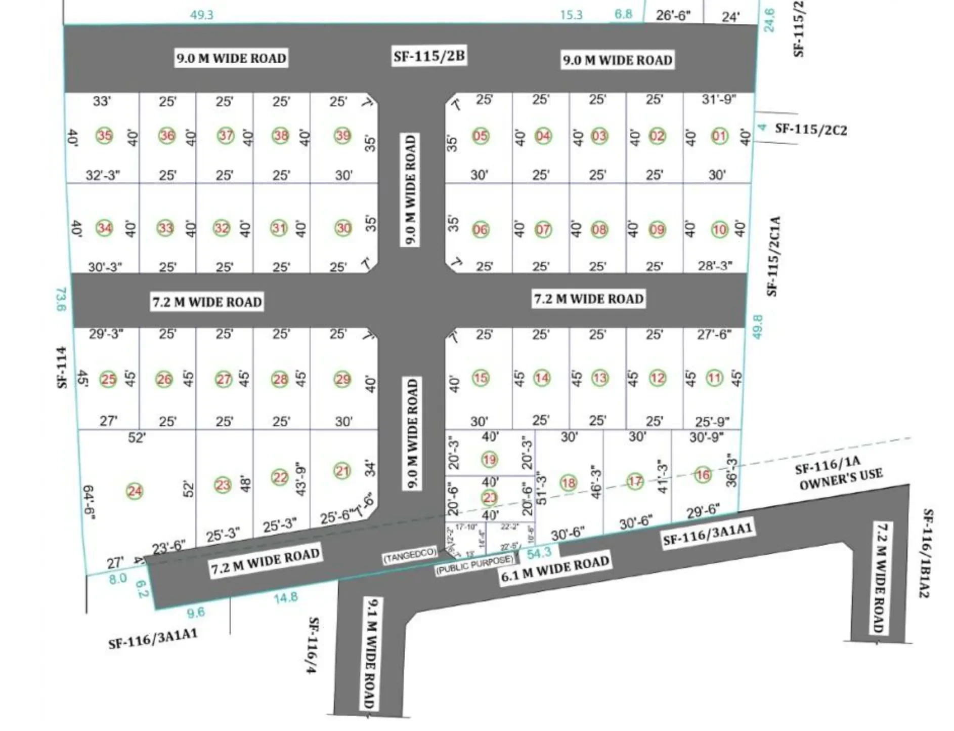 - Residential Plots: Sizes range from approximately 810 sq. ft. to 2,948 sq. ft..