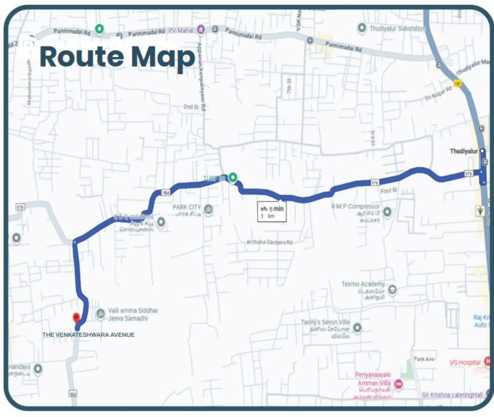 - Key Features: The Venkateshwara Avenue in Thudiyalur spans of 12 Acres acres and comprises 40 well-planned Units within a structures community layout.