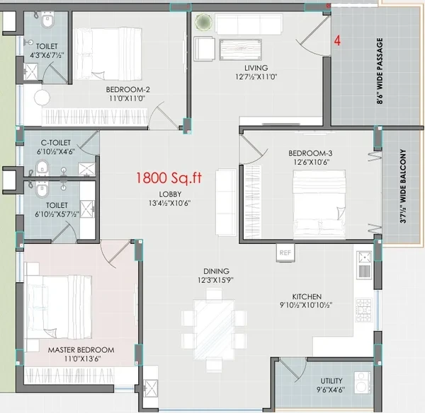 Spread across a compact yet efficiently utilized land parcel, Thimu Blue Bell features multiple residential blocks with a limited number of units, ensuring a peaceful and community-oriented lifestyle. The apartments are designed to provide ample natural light, ventilation, and optimal space utilization for comfortable living.
