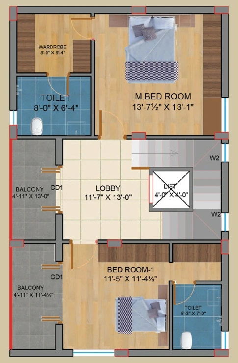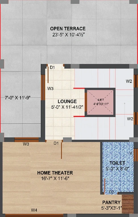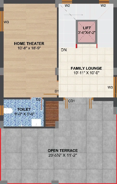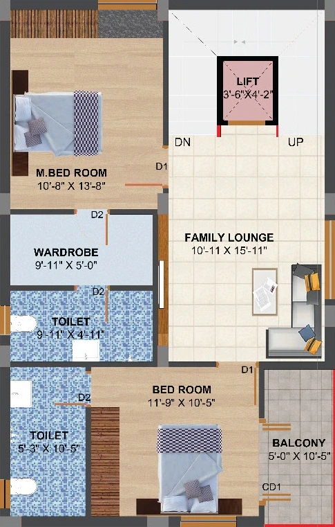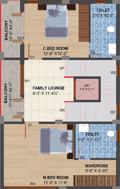Main Areas: Features marble flooring or premium vitrified tiles.
