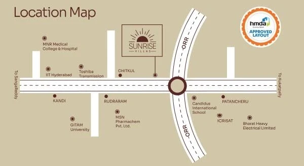 Location: Situated in Indresham, Patancheru, near the Nehru Outer Ring Road (ORR), offering connectivity to major IT hubs like the Infosys SEZ.