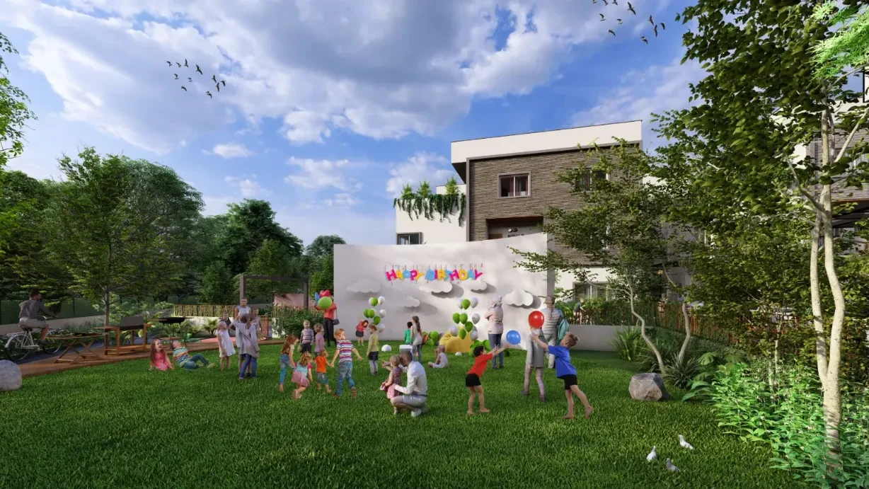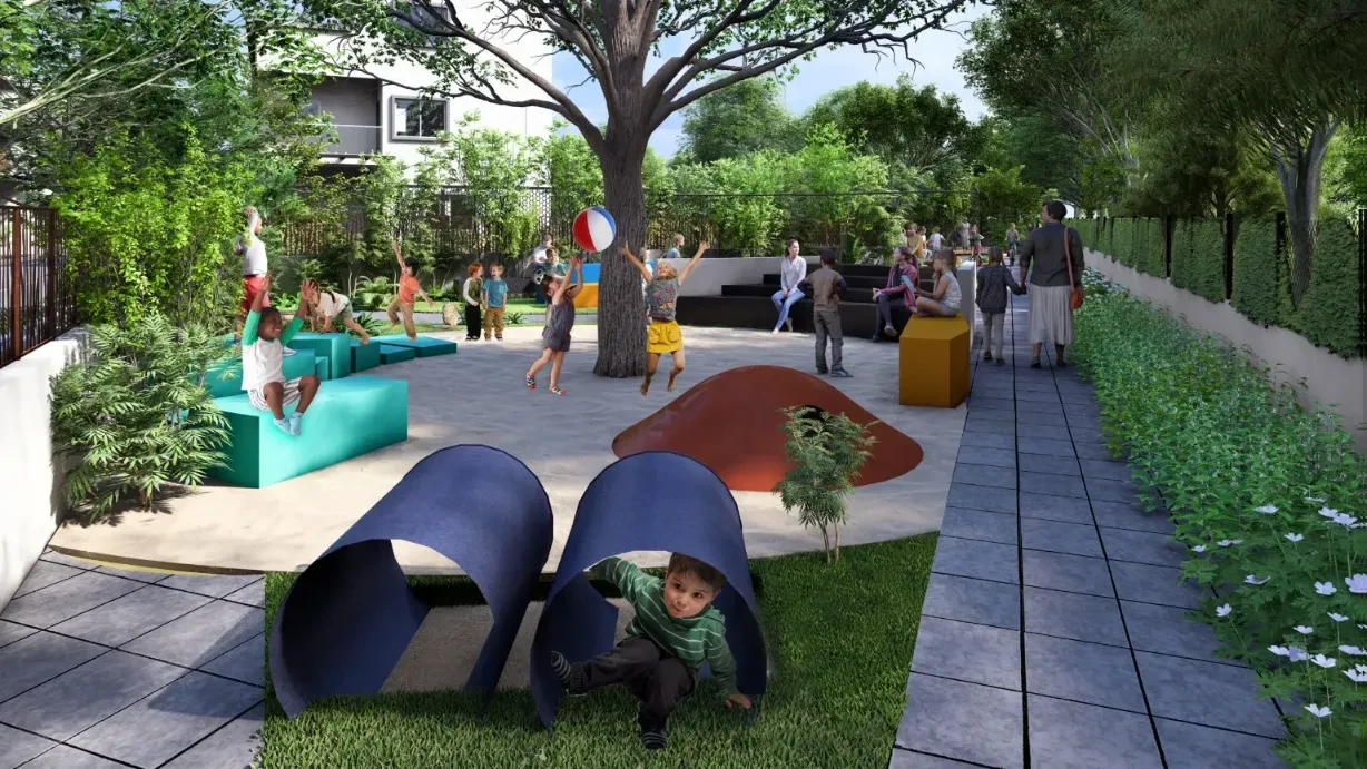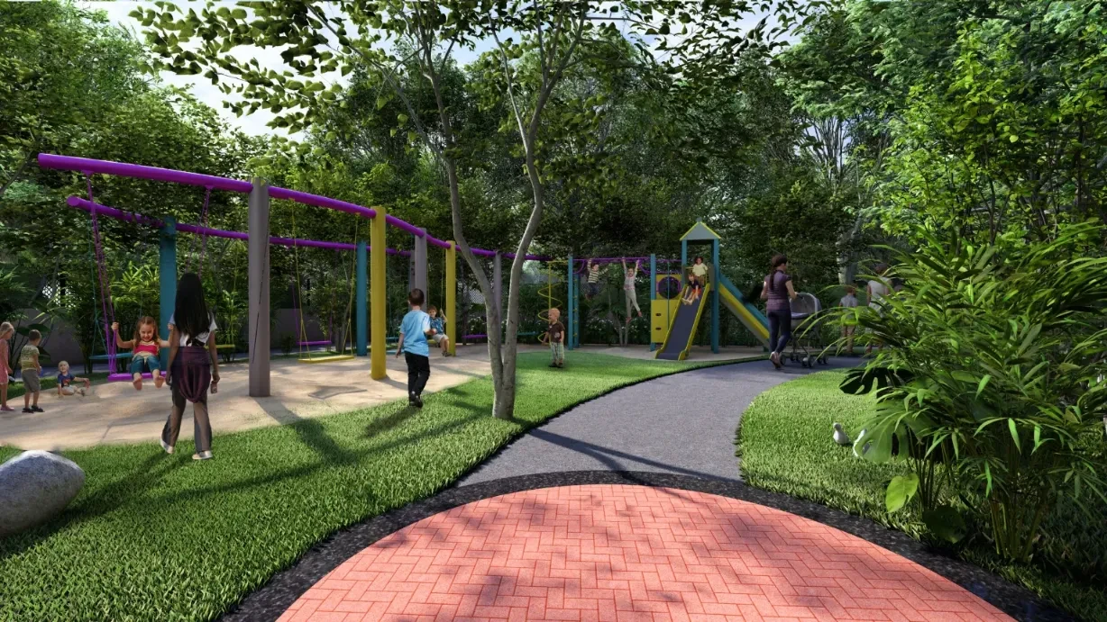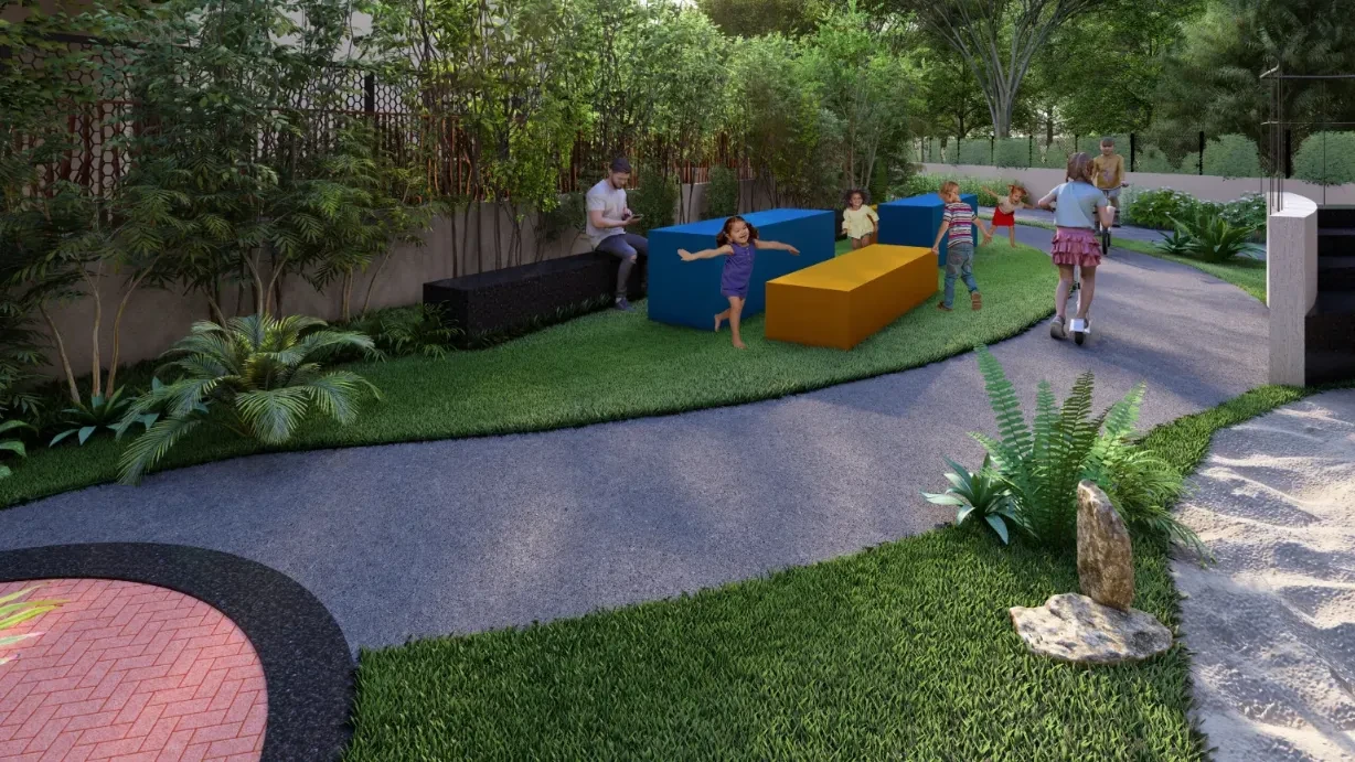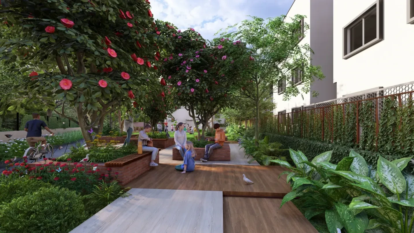 A: The community is spread across 30 acres and features three open courtyards, delivering a resort-style living experience right within the city.