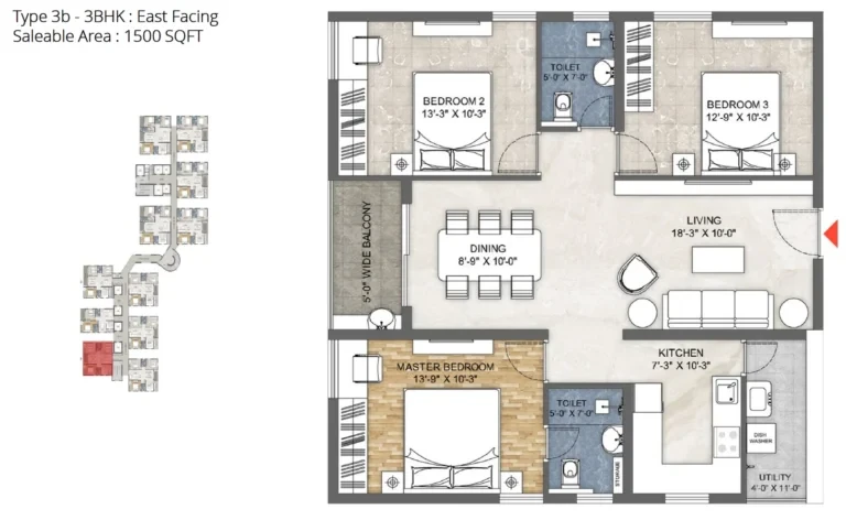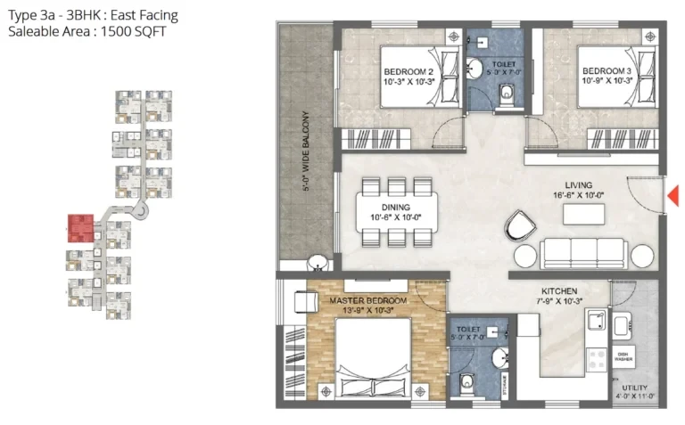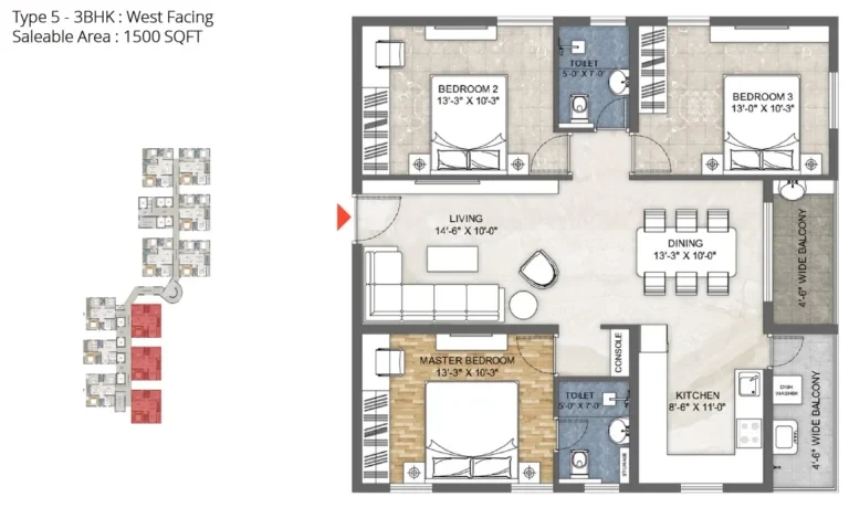 3 BHK (1500 sq. ft.): Priced around ₹1.05 Cr to ₹1.13 Cr.