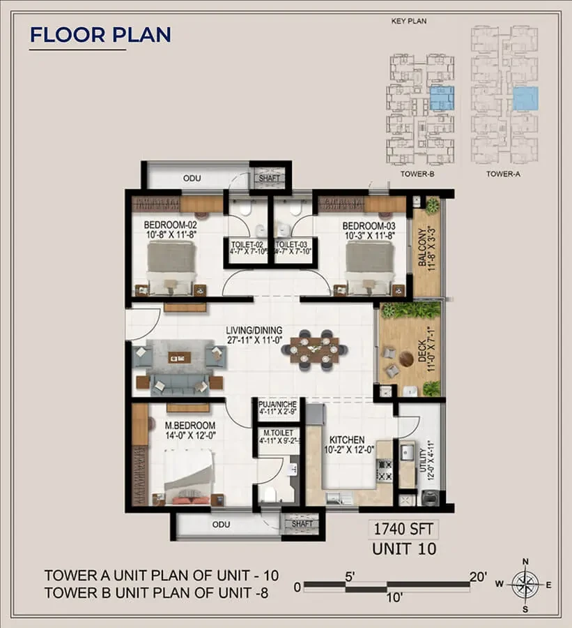 - High Speed Automatic Passenger and Service lifts with V3F (Variable Voltage Variable Frequency) Drives for Energy Efficiency of reputed make for each tower.