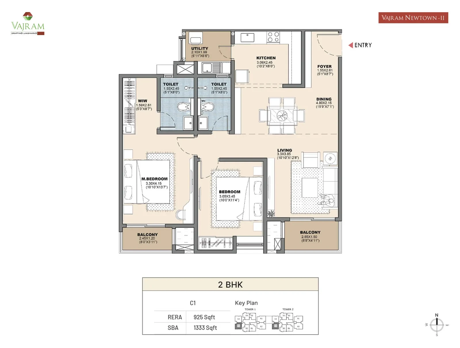 Vajram Newtown - II (also known as Vajram Newtown 2.0) is an ongoing luxury residential apartment project by the Vajram Group, located on Thanisandra Main Road in North Bangalore. It is the second phase following the success of the original Vajram Newtown.