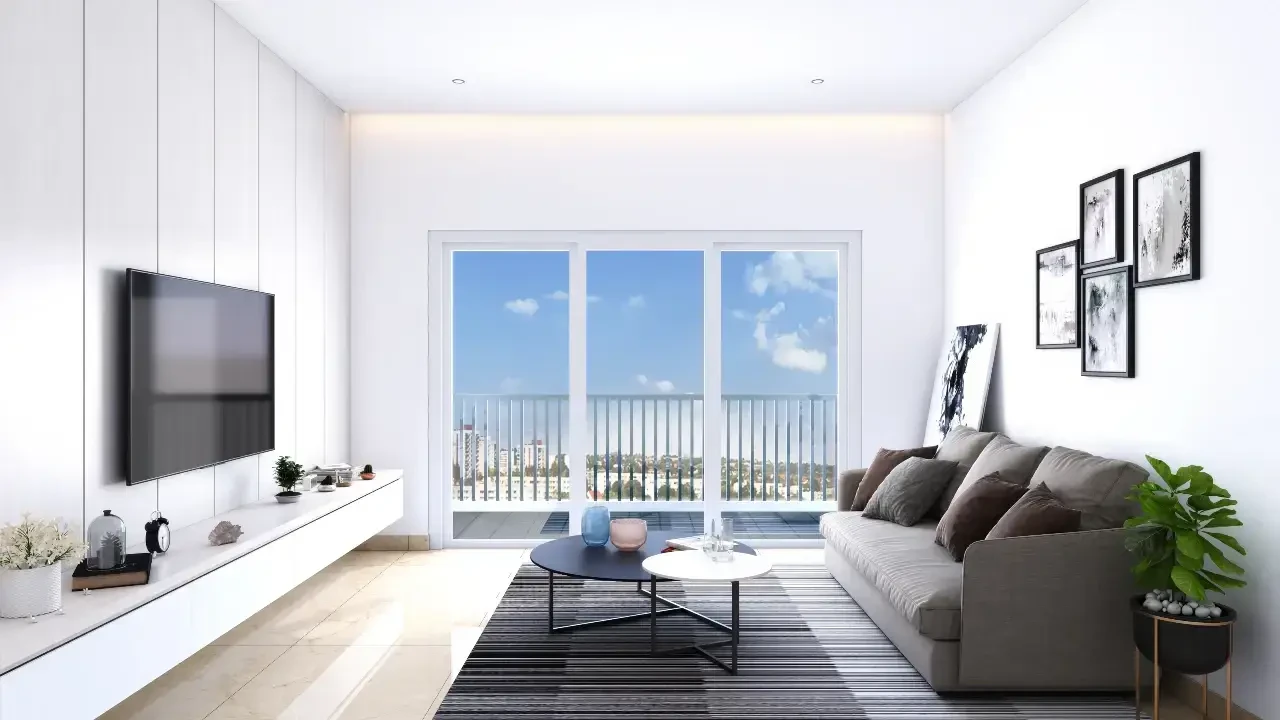 Premium Emulsion paint finish for walls (in Foyer, Living, Dining, Bedrooms). False ceiling with grid panels in Toilets. Premium emulsion paint finish in Common Area. MS handrail with paint finish as per design in all balconies and Common Area.