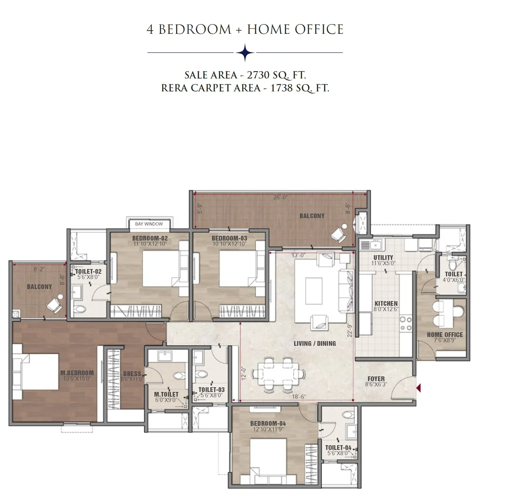 - Anti-skid ceramic tiles in balconies & utility