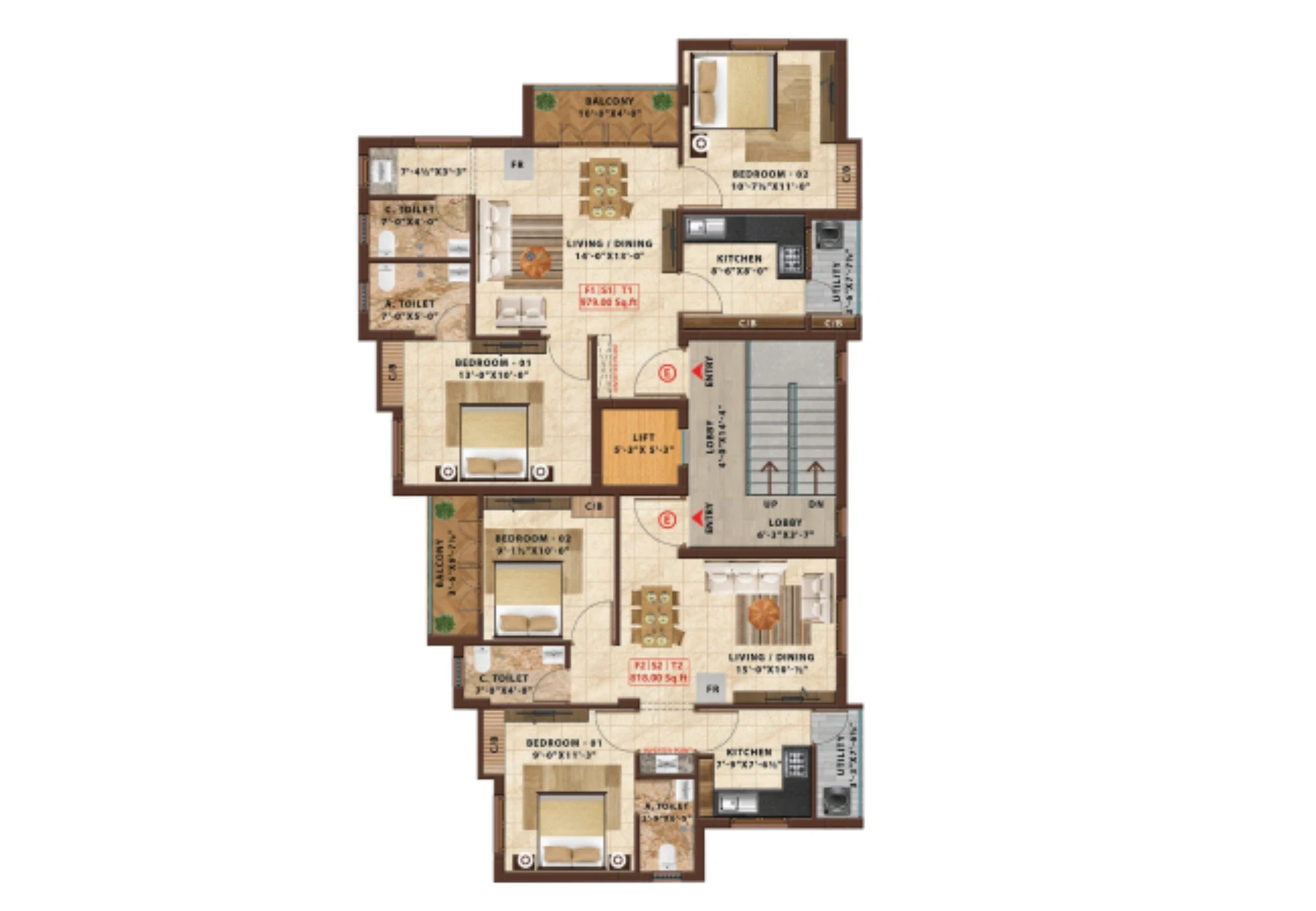 818 to 1108 Sq.Ft Sq.Ft
