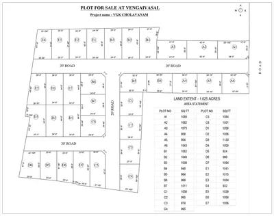 Welcome to a world of VGK Cholavanam Plug & Play Villa Plots at Vengaivasal bring heritage and modern living together. Designed on a unique Cholavanam theme, the community reflects timeless charm while offering all the comforts of today. With plot sizes ranging from 924 Sq.ft. to 1130 Sq.ft., every space is ready-to-build, complete with roads, streetlights, water, and electricity connections. CMDA + RERA approvals, clear titles, and a fully secured layout ensure peace of mind, while the fast-growing Vengaivasal location makes it a smart investment for the future. At Cholavanam, you don’t just buy a plot – you become part of a legacy.