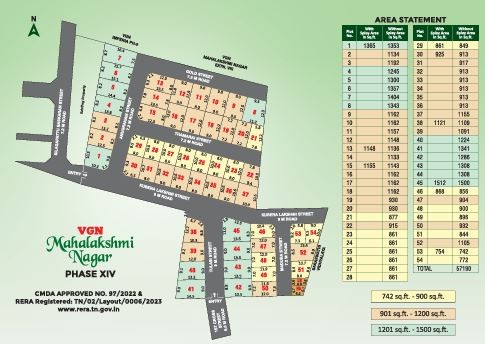 - Key Features: VGN Mahalakshmi Nagar Phase XIV in Thiruverkadu spans of 3 acres and comprises 54 well-planned Units within a structures community layout.