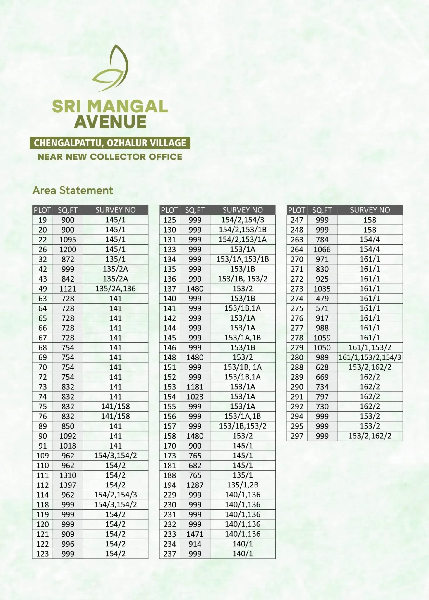 Vishwak Sri Mangal Avenue is a plotted development by Vishwak Properties, primarily located in Chengalpattu, near Chennai, offering integrated community living with plots ranging from 600 to 2000 Sqft, featuring amenities and DTCP approval, and is part of a larger 20-acre project spread across two phases, with successful sales in Phase 1 and ongoing sales in Phase 2 with villas also available.