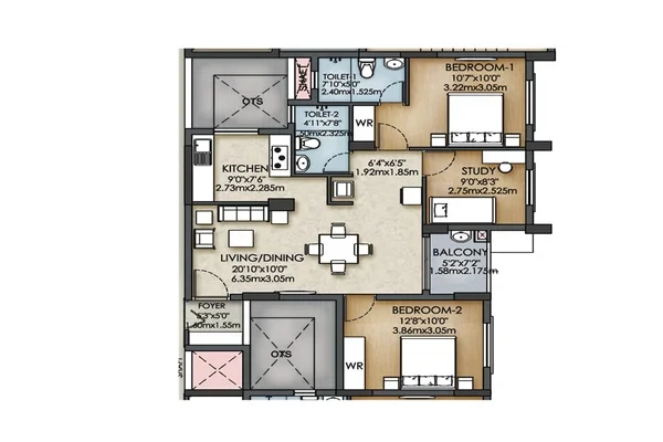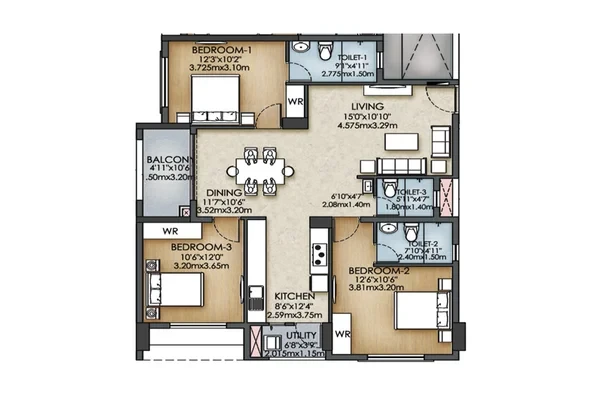 3 phase connection: 4KVA for 2BHK and 6 KVA for 3BHK