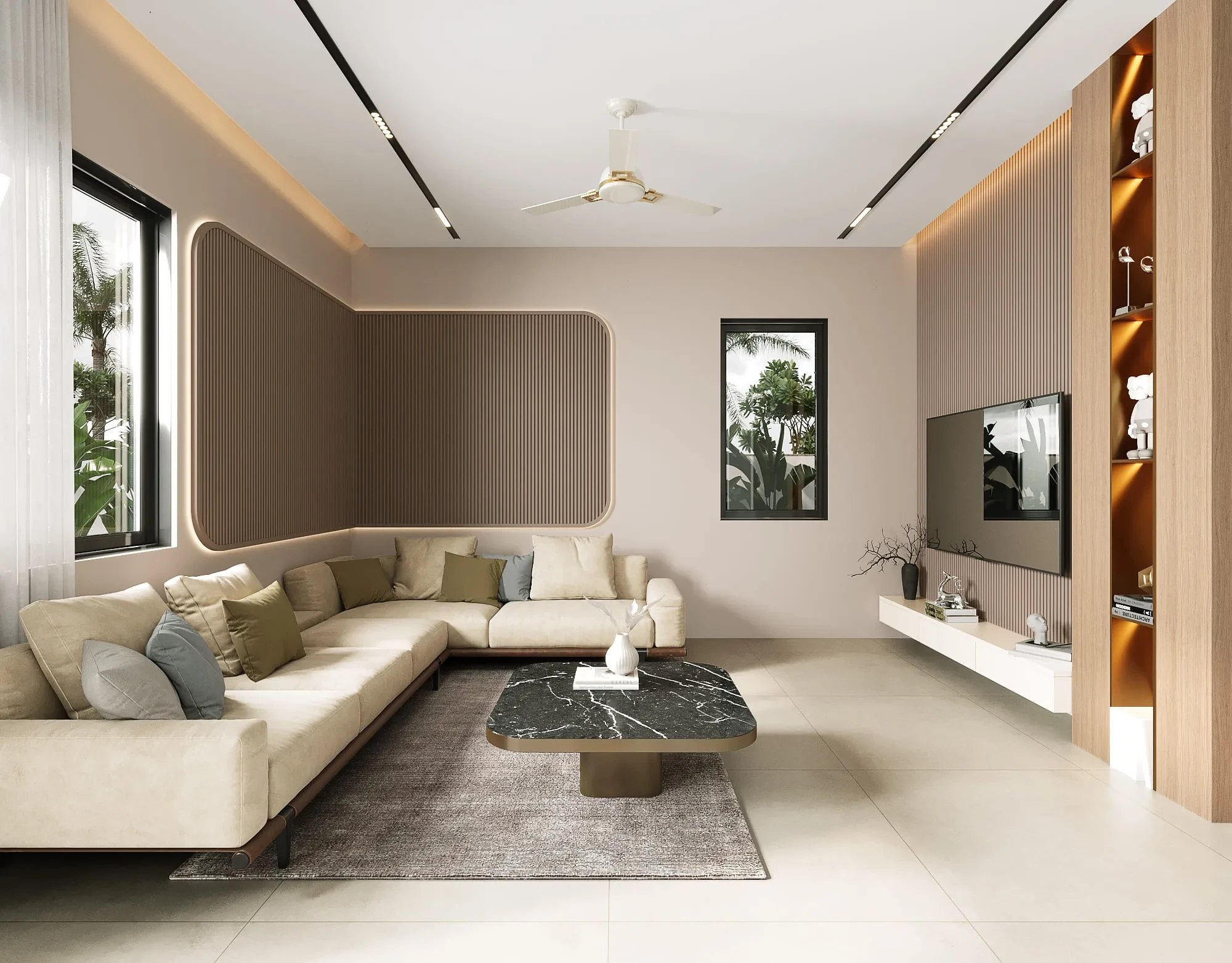 LIVING, DINING, KITCHEN & OTHER BEDROOMS: 600×1200 mm vitrified tiles.