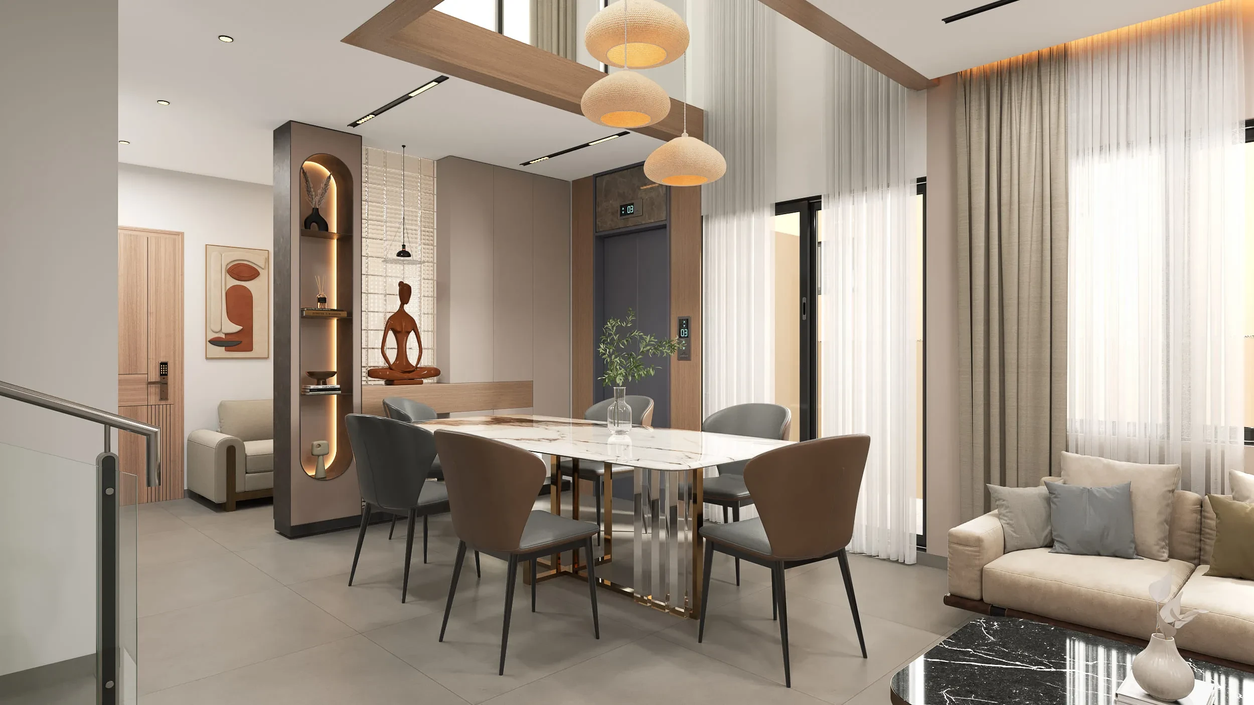 Structural Glazing: Double-height glazing with aluminium frame & 8mm toughened glass.