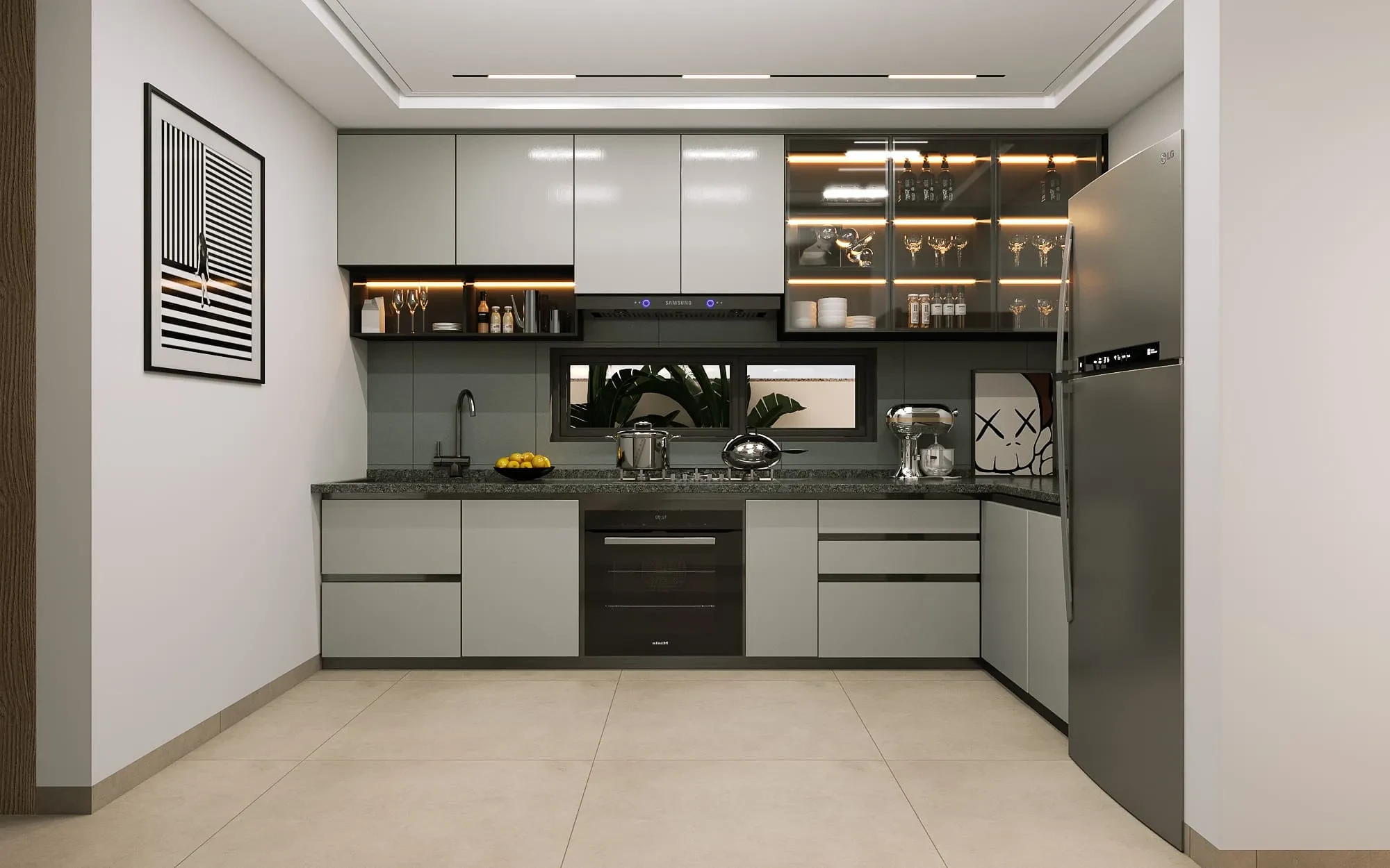 Adequate power sockets for all appliances including chimney, refrigerator, microwave, oven, mixer, and Aqua Guard.