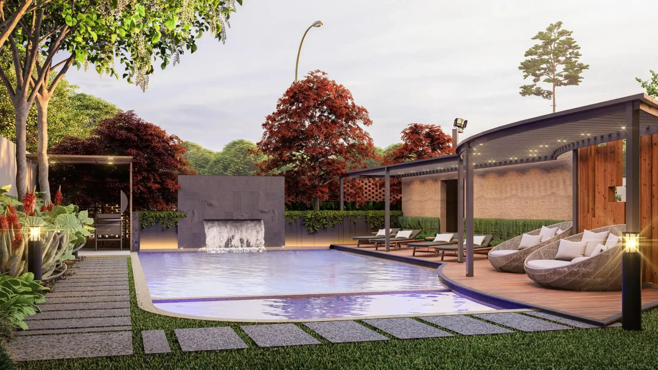 Community: Clubhouse, party lawn, and indoor games area.