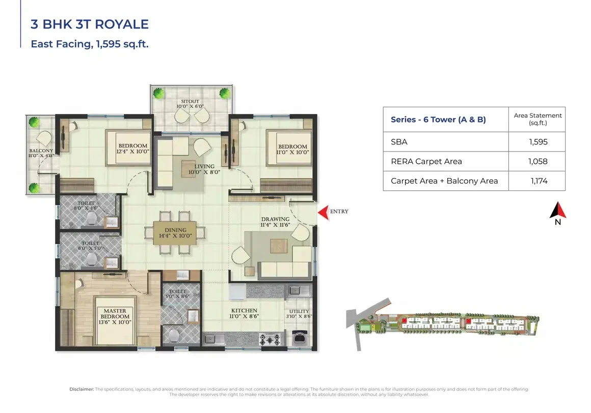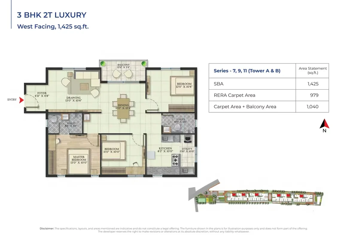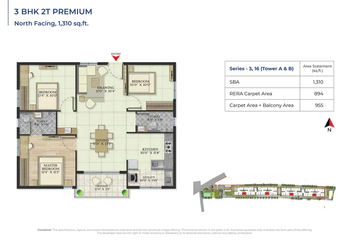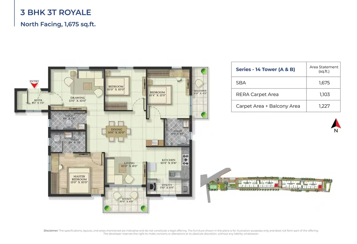 This exclusive residential enclave features 300 units, spread across B+G+7 floors, offering thoughtfully designed 2 & 3 BHK apartments. The unit sizes range from 1050 sq. ft. to 1675 sq. ft., catering to diverse homebuyer needs. With prices starting from ₹72 lakh, Abhee Serenity Springs provides a perfect opportunity to own a dream home in one of Bangalore’s thriving neighborhoods.
