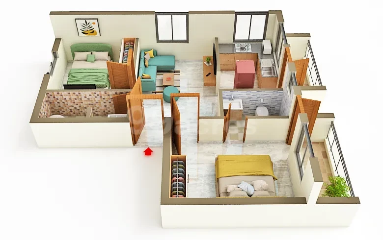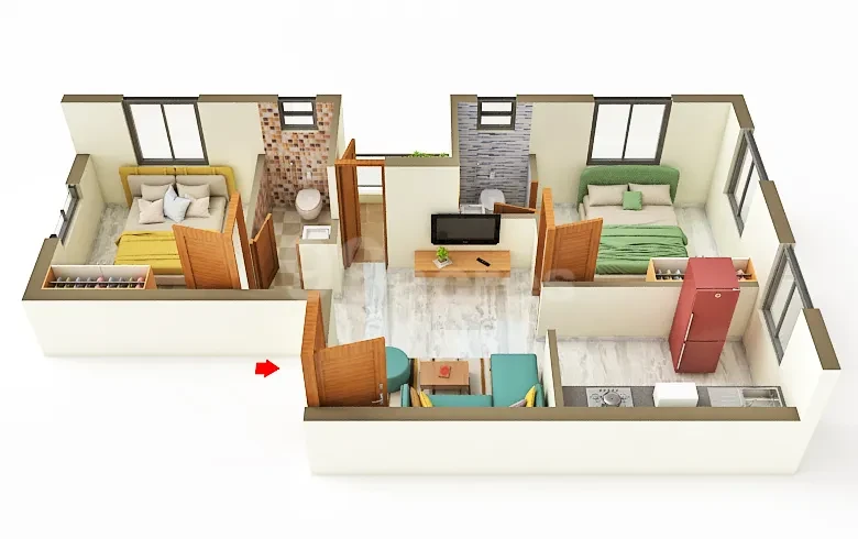 - Main door - Eye viewer, Brass tower bolt, Bullet lock, door magnet.