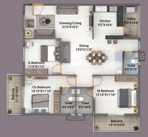 Super Built-Up Area: 1680 Sq.ft, 1770 Sq.ft, 1870 Sq.ft, 1420 Sq.ft, 1590 Sq.ft