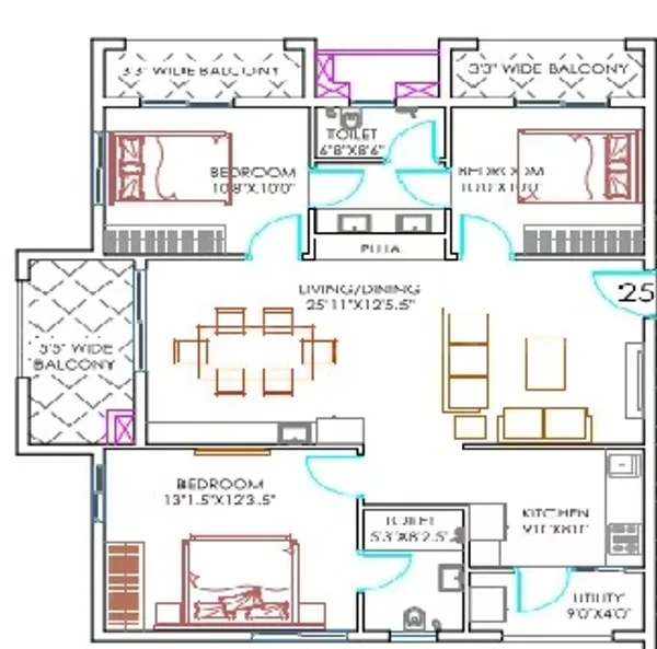 Configuration: 2, 2.5 & 3 BHK Apartments