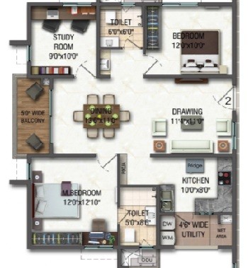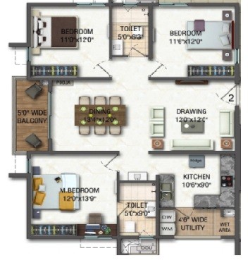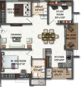 Provision for Washing Machine & Wet Area for Washing Utensils etc.