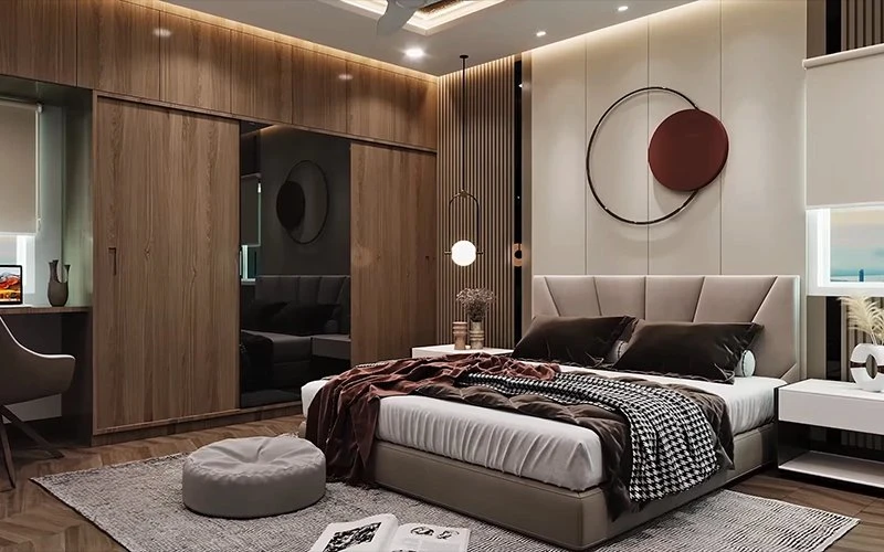 Teak veneered frame & shutter with melamine polish and reputed hardware.