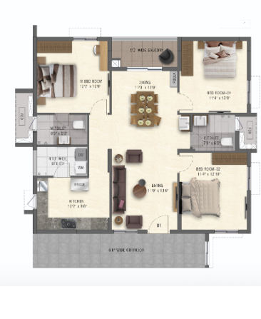 Configuration: 2, 2.5 & 3 BHK Apartments