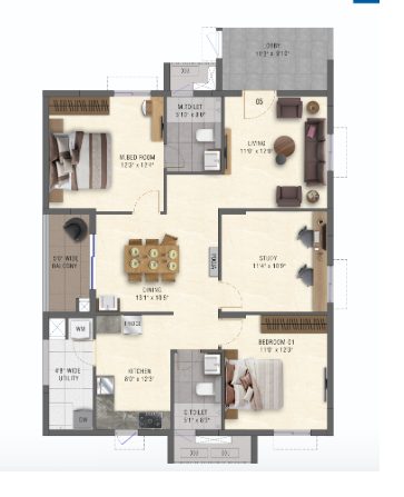 2 BHK / 2 BHK+STUDY /3 BHK + 2T