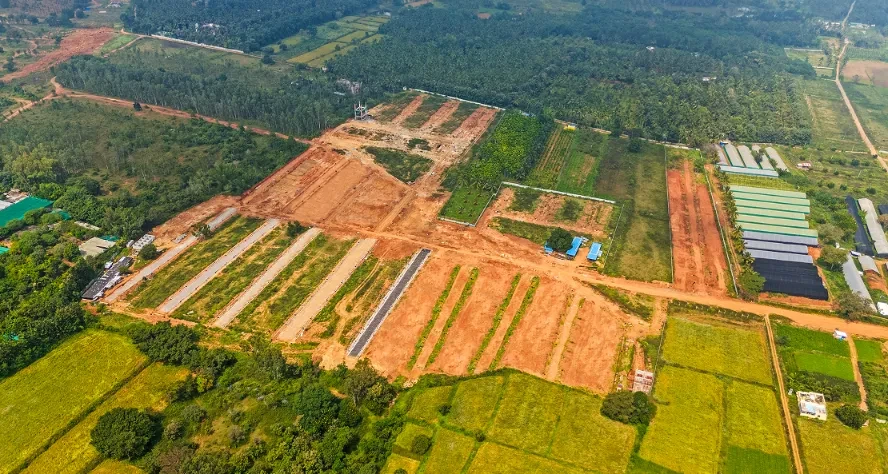 - It's a planned community offering plots for building homes, with developer-provided infrastructure and recreational facilities.