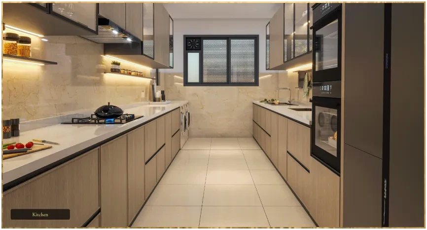 - Plumbing/Sanitary: Fixtures from Kohler or equivalent brands; glass shower partitions and geysers provided in all toilets.