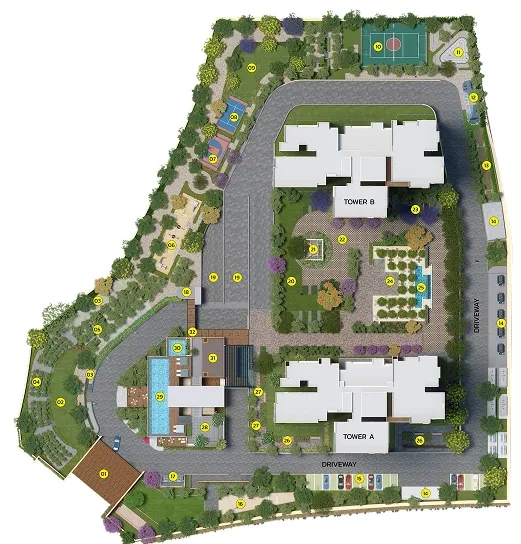AmenitiesThe project features a 25,745 sq. ft. clubhouse and over 40 luxury amenities: