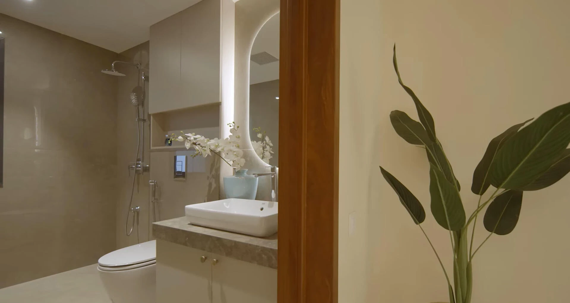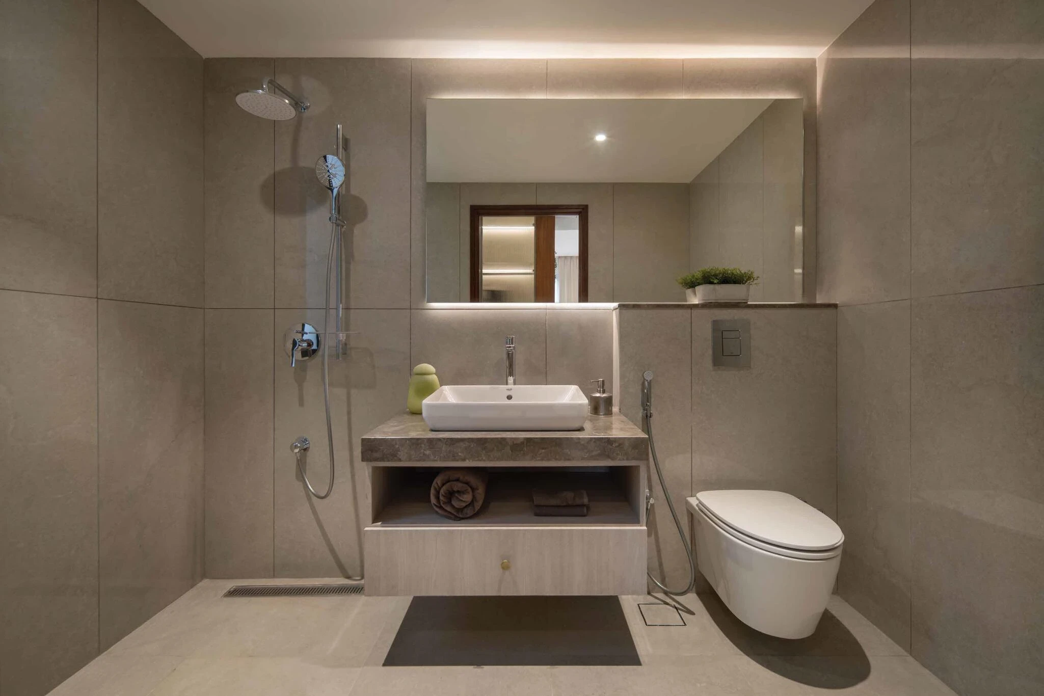 Master Bed Washroom – Vitrified tiles up to false ceiling