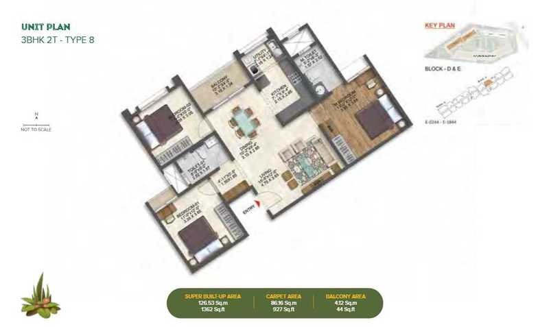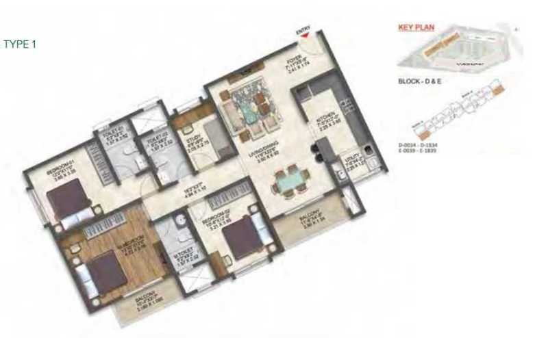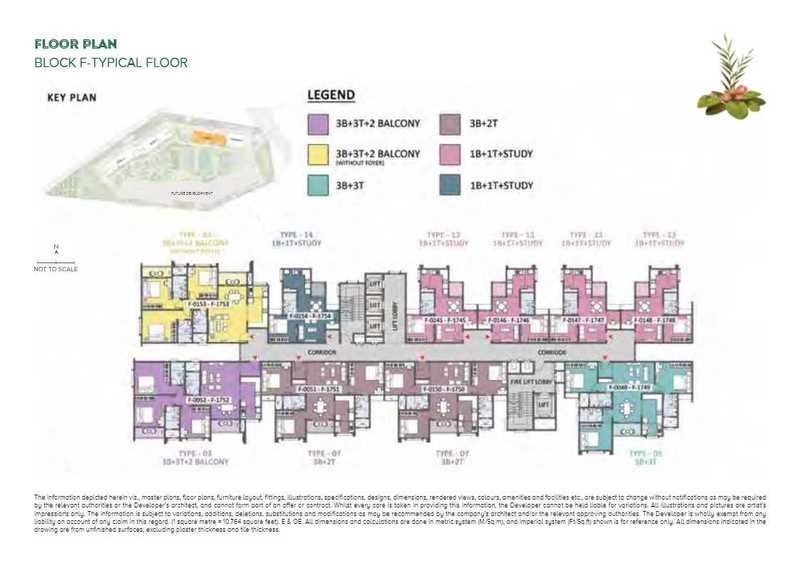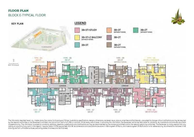* Unit Flooring: Vitrified tiles for Living/Dining/Family/Foyer/Bedrooms/Kitchen/Utility; Wood finish Vitrified tiles for Master Bedroom; Ceramic tiles for Balcony; Ceramic tiles for Toilets.