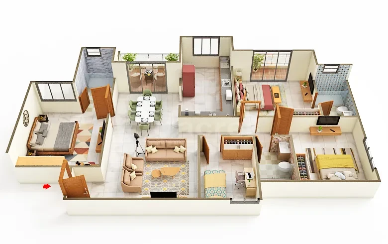 - Main Door: Hardwood Frame with Flush Shutter with both sides Veneer.