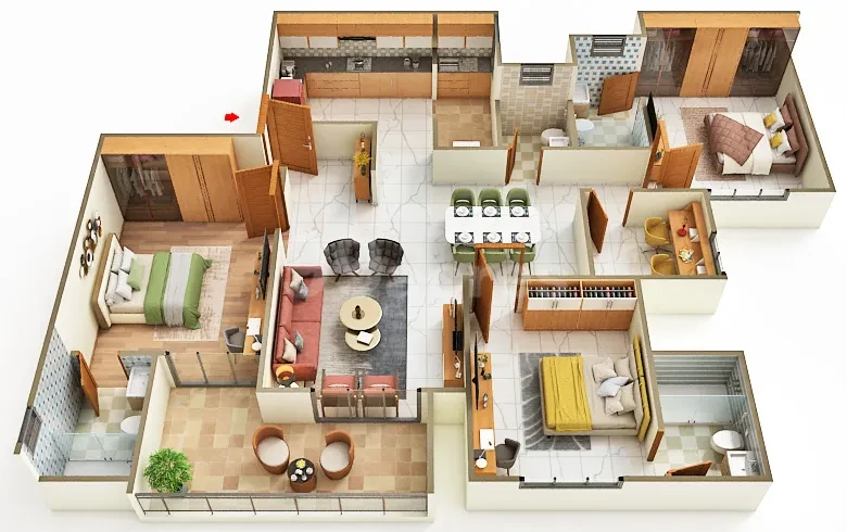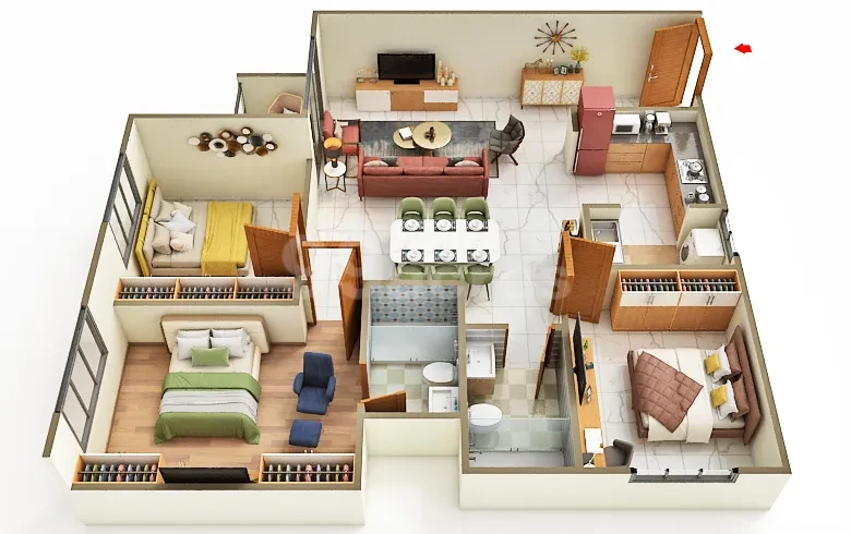 Plumbing: Water inlet / drain provision for instant geyser, water purifier, sink, and washing machine. Dishwasher provision for all units except 1 BHK and 2.5 BHK.