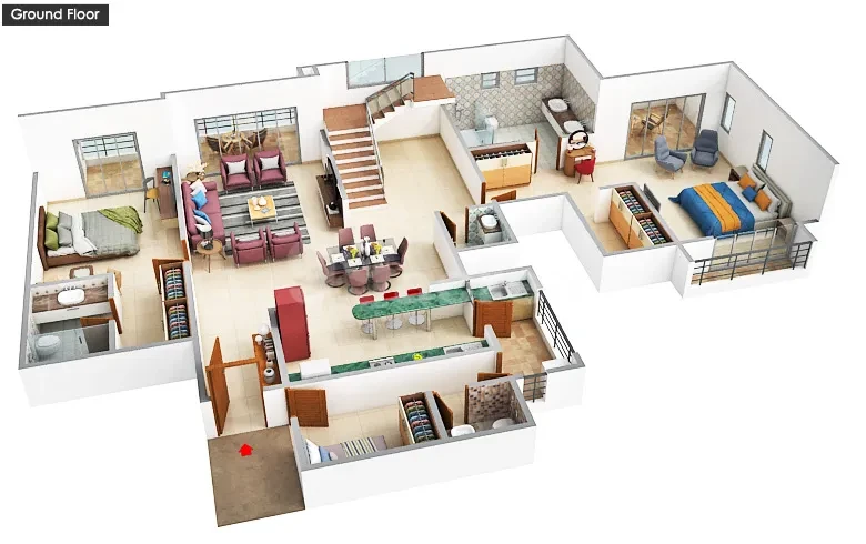 Bedroom Doors: Hardwood frame PU finish, Pre-engineered shutters with both sides veneer.