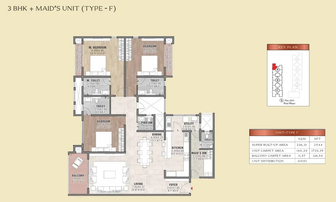 Unit: Maid’s room & Toilet - Ceramic tiles with matt finish & ceramic tile.