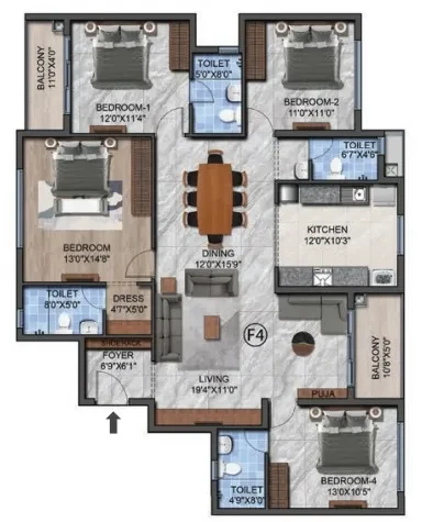 Brigade Lumina is an upcoming residential project by Brigade Group, located on Tumkur Main Road, Chikkabidarakallu, West Bangalore. This project is spread across 4 acres and features 3 grand towers with 21 floors, offering 450 premium 1, 2, 3, and 4 BHK apartments. Designed for comfort and elegance, these Residential Apartments at Tumkur Road come with spacious layouts, high-quality finishes, and modern interiors. The development boasts 80% open spaces, ensuring a serene and green environment. With a starting price of ₹69 lakhs, Brigade Lumina offers a perfect blend of luxury and affordability.
