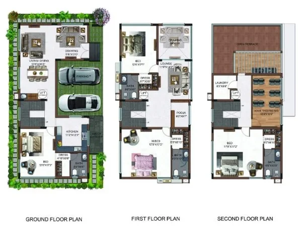 - Units surrounded with 50% green cover, with minimum 1000 sq.ft. private gardens for ample light, ventilation, and stunning views