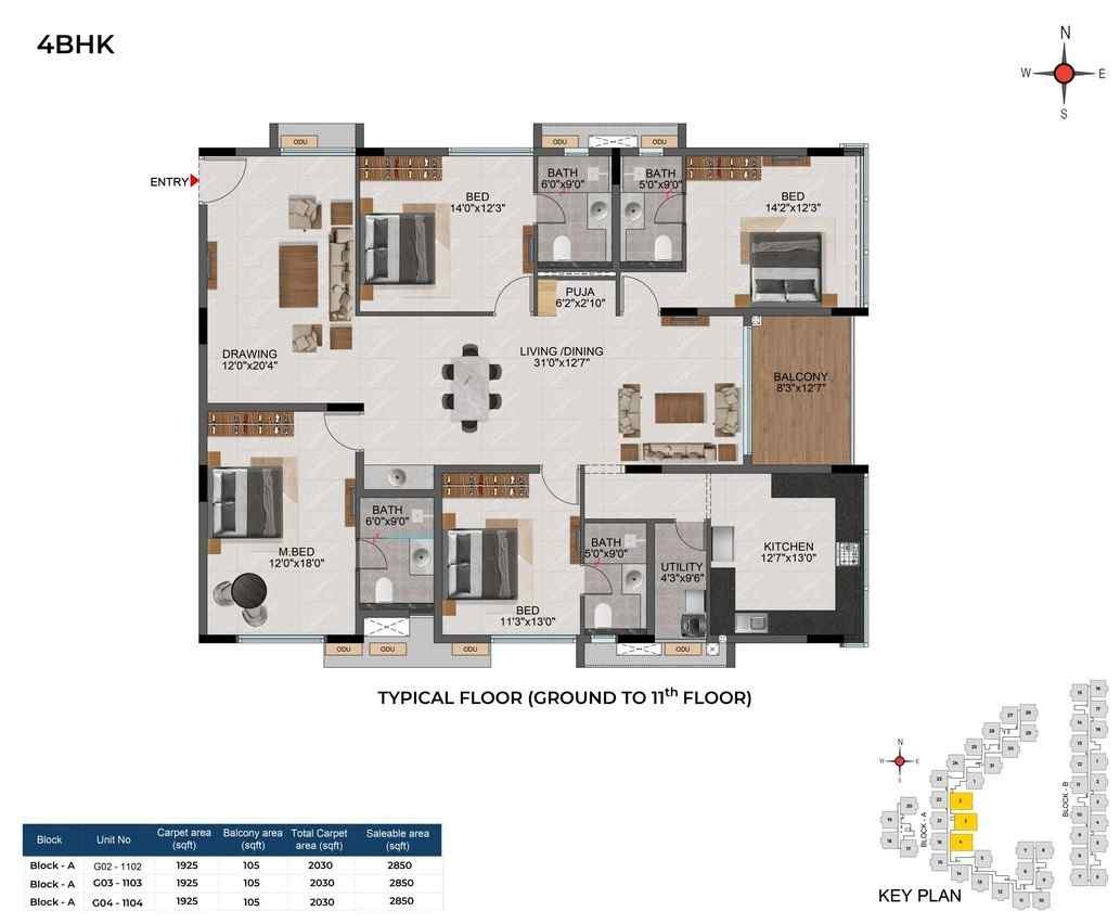 Floor-Floor height (incl. slab) : Will be maintained at 2930 mm