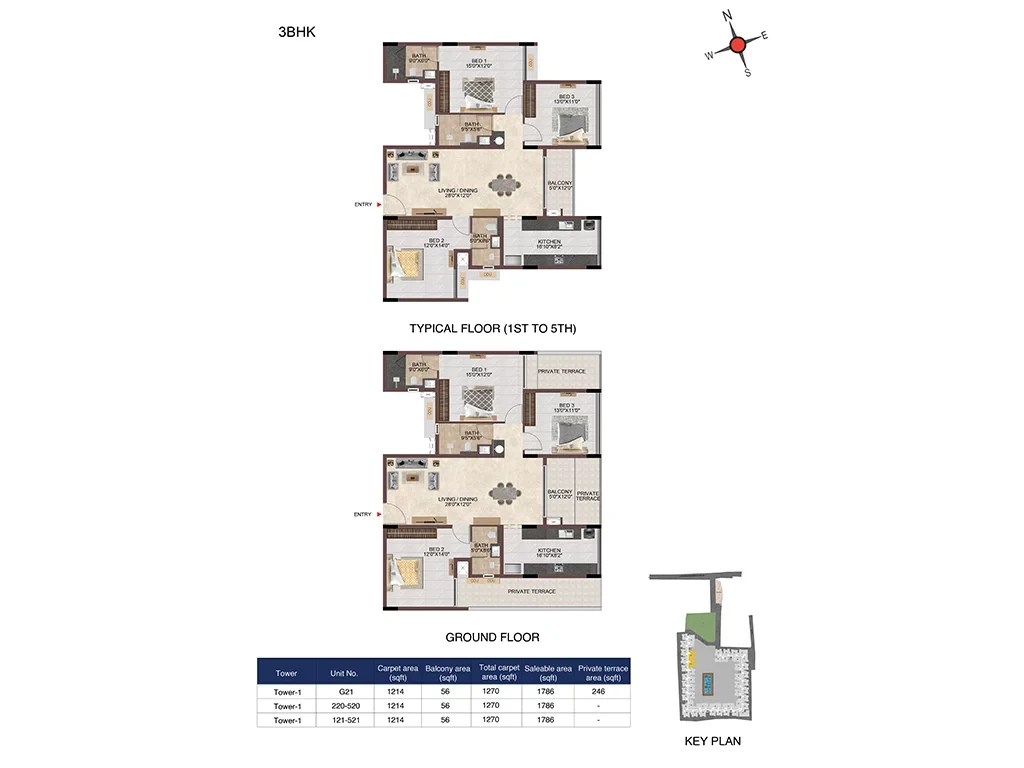 STRUCTURAL SYSTEM RCC Framed structure designed for seismic compliant (Zone - 3) MASONRY 200mm for external walls & 100mm for internal walls FLOOR-FLOOR HEIGHT (INCL. SLAB) Will be maintained at 2950mm WALL / CEILING FINISH INTERNAL WALLS Finished with 2 coats of putty, 1 coat of primer & 2 coats of premium emulsion CEILING Finished with 2 coats of putty, 1 coat of primer & 2 coats of Tractor emulsion EXTERIOR WALLS Exterior faces of the building finished with 1 coat of primer & 2 coats of exterior Emulsion paint with color as per architect design BATHROOM Ceramic Tile up to 2250mm height of size 300mmx600mm & above false ceiling will be finished with a coat of primer KITCHEN Ceramic wall tile of size 600mmx600mm for a height of 600mm above the counter top finished level TOILET CEILING Grid type false ceiling FLOOR FINISH WITH SKIRTING LIVING & DINING Italian marble flooring BEDROOM & KITCHEN Vitrified tile of size 1200mmx600mm BATHROOM Anti-skid tiles of size 300mmx300mm BALCONY & PRIVATE TERRACE Anti-skid tiles of size 600mmx600mm KITCHEN & DINING KITCHEN Platform will be finished with granite slab of 600mm wide at height of 850mm from the finished floor level HOB POINT Point provided in the kitchen. ELECTRICAL POINT For chimney & water purifier SINK Single bowl SS sink with drain board and pullout faucet DINING Granite counter with designer bowl washbasin. BALCONY HANDRAIL MS handrail as per architect’s design CLOTH DRYING CLAMP Cloth drying clamp in balcony WINDOWS WINDOWS Aluminium powder coated windows with sliding shutter with see through plain glass and MS grill on inner side (wherever applicable) FRENCH DOORS Aluminium powder coated frame and doors with toughened glass without grill VENTILATORS Aluminium powder coated frame of fixed louvered ELECTRICAL POINTS POWER SUPPLY 3 PHASE power supply connection SAFETY DEVICE MCB & RCCB (Residential Current Circuit breaker) SWITCHES & SOCKETS Modular box, modular switches & sockets of Schneider / Anchor Legrand or equivalent will be provided WIRES Fire Retardant Low Smoke (FRLS) copper wire of a quality BIS brand polycab or equivalent will be provided TV Point in Living & all the bedroom DATA Point in Living & Bed 1 USB POINT Point in Living & Bed 1 FOOT LAMP Foot lamp in all the bedrooms OUTDOOR SOCKET 6Amp outdoor socket in balcony area SPLIT- AIR CONDITIONER Split AC point will be provided in the living / Dining and in all bedrooms EXHAUST FAN Point provided in all bathrooms. GEYSER Point will be provided in all bathrooms BACK-UP 1BHK-350W, 2BHK-400W, 3BHK-500W, 4BHK-650W BATHROOMS SANITARY FIXTURE & CP FITTINGS Kohler/American Standard/ equivalent BATHROOM 1 Wall mounted WC with cistern, Health faucet, Single lever diverter, Shower panel with rain shower and hand shower, counter mount wash basin, glass partition with door, 2 feet trench drain and granite flooring in shower area OTHER BATHROOMS Wall mounted WC with cistern, Health faucet, Single lever diverter, Rain shower, counter mount wash basin, glass partition in shower area and pest free drain JOINERY MAIN DOOR Good quality full jamb door frame of size 1200x2300mm with veneer finish shutter and decorative side panel Ironmongeries like Digital door lock of Yale /equivalent, tower bolts, door viewer, safety latch, magnetic catcher, etc., BEDROOM DOORS Good quality full jamb door frame with double side laminated shutter of size 1000x2300mm Ironmongeries like Godrej or equivalent lock, door bush, tower bolt & magnetic catcher, etc., BATHROOM DOORS Good quality full jamb door frame with double side laminated shutter of Size900x2300mm with water proof layer on the inner side Ironmongeries like one side coin & thumb turn lock of Godrej / equivalent without key, tower bolt & door bush, etc. SPECIFICATIONS COMMON TO BUILDING COMPLEX LIFT Automatic lift will be provided with MS Finish BACK – UP 100% Power backup for common amenities such as Clubhouse, lifts, WTP, STP & selective common area lighting NAME BOARD Apartment owner name will be provided in ground floor LIFT FASCIA Granite/ equivalent cladding at all levels LOBBY Granite flooring at ground floor & tile flooring at other levels CORRIDOR Tile flooring at all levels STAIRCASE FLOOR Granite flooring at all levels STAIRCASE HANDRAIL MS handrail with enamel paint finish in all floors TERRACE FLOOR Pressed tile flooring TERRACE DOORS Good quality door frame with FRP shutters of size 900 X 2100mm with paint finish Ironmongeries like thumb turn lock of Godrej or equivalent, door closure & tower bolt, etc., OUTDOOR FEATURES WATER STORAGE Centralized UG sump with WTP (Min. requirement as per water test report) RAIN WATER HARVEST Rain water harvesting site (As per site condition) STP Centralized Sewage Treatment plant SAFETY CCTV surveillance cameras will be provided all-round the building at pivotal Locations in ground level WELL DEFINED WALKWAY Walkway spaces well defined as per landscape design intent SECURITY Security booth will be provided at the entrance/exit with MY Gate App. COMPOUND WALL Site perimeter fenced by compound wall with 1500mm height and 600mm barbed wire fence with entry gates as per design intent from finished ground level. LANDSCAPE Suitable landscape at appropriate places in the project as per design intent DRIVEWAY Convex mirror for safe turning in driveway in / out EXTERNAL DRIVEWAY Interlocking paver block / or equivalent flooring with demarcated driveway as per landscape design intent.