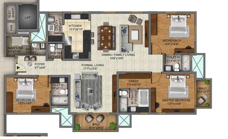4 BHK: 4,235 to 4,940 sq. ft..