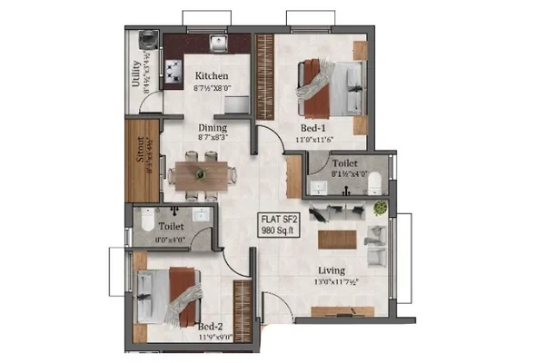 RCC framed strategically constructed structure keeping in mind the best of architecture and specifications both from inside as well as outside.