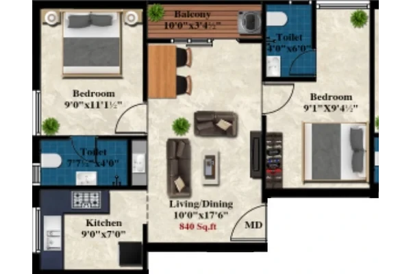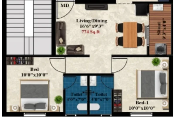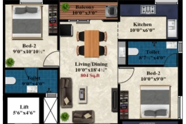 Charan Viruksham developed by MS Charan Nestled in the fast-developing neighbourhood of Madhavaram, Chennai, offers thoughtfully designed 2 BHK flats. With only 12 exclusive units, the project ensures a close-knit community and ample privacy for residents. Each flat ranges from 774 sq.ft to 915 sq.ft, making it ideal for nuclear families and first-time homeowners seeking a comfortable and functional living space.