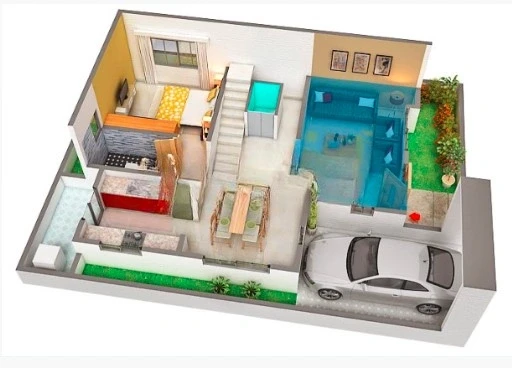 Villas designed in line with contemporary style with double height Living room and a provision for Hydraulic lift for all the villas.